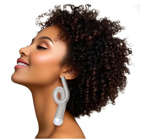 Drop Large Silver Looped Coil Wire Pearl Earrings