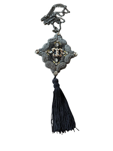 Ranjana Khan Beaded Rhinestone Tassel Signed Statement Necklace