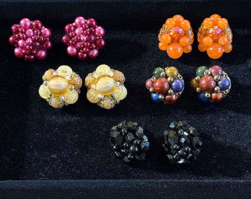 Signed Cluster Clip Earrings