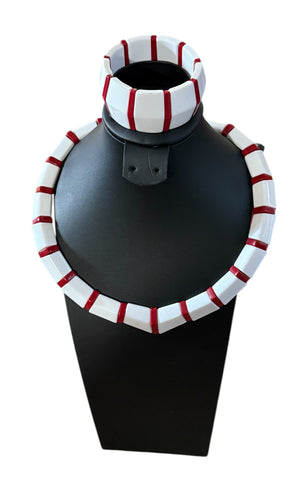 Vintage Red And White Plastic Retro Necklace & Bracelet