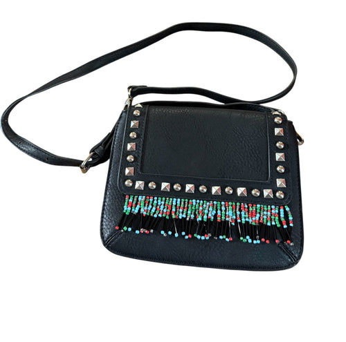 Charming Charlies Beaded Fringe Faux Leather Crossbody