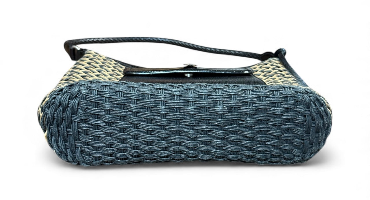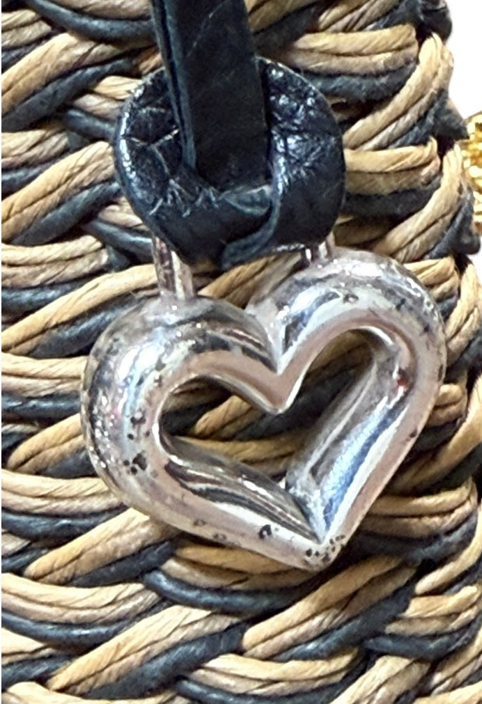 BRIGHTON Edna Woven Straw Wicker Natural Tan Brown Leather Handbag