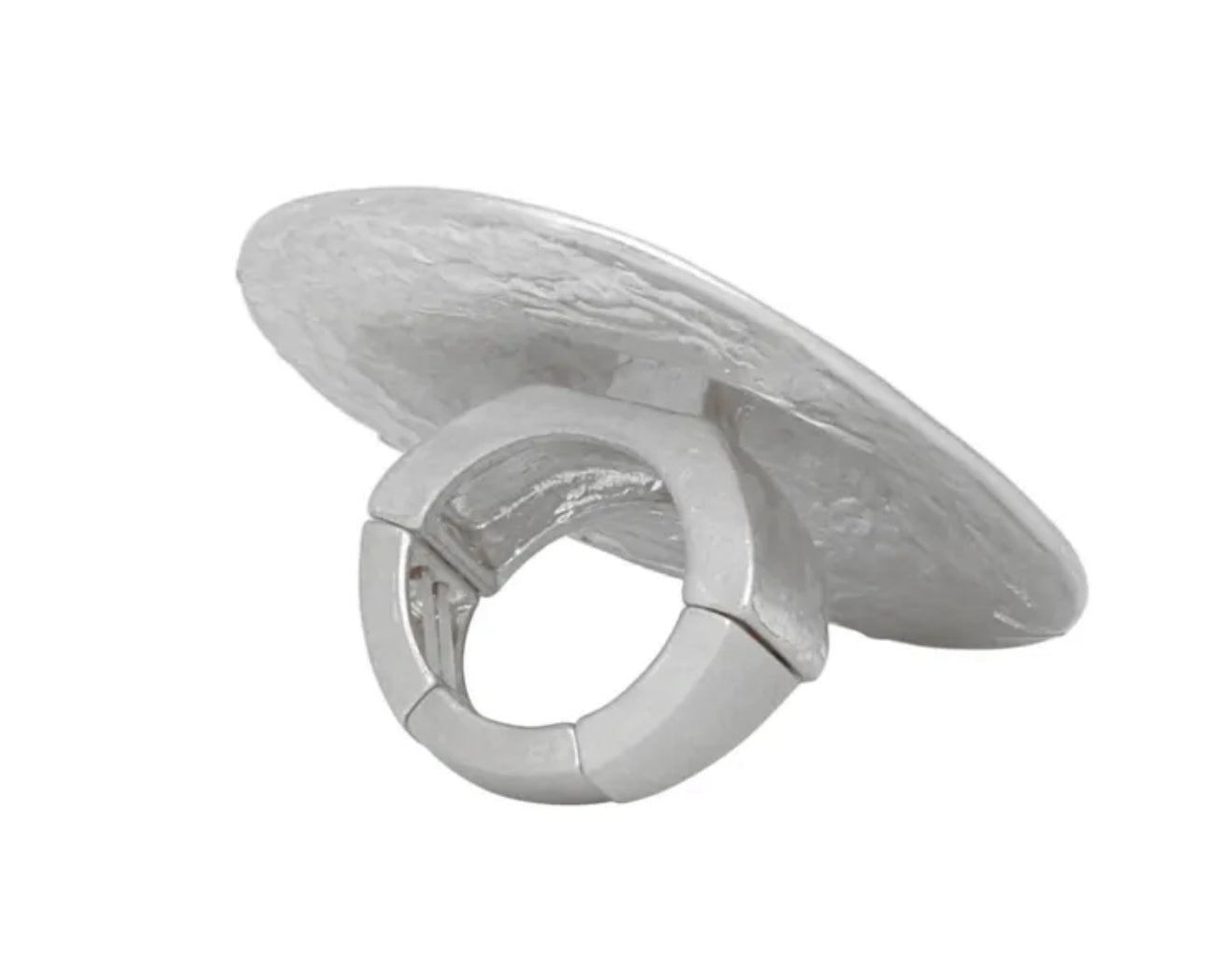 Command attention with unapologetic edge in this Women's Large Statement Ring. The XL tribal-inspired design flaunts a matte silver finish with an industrial round angular dome that screams power and presence. Measuring a striking 2.5" x 2.15", this oversized stretch ring fits sizes 8+ with ease, making it as versatile as it is fierce. When your style calls for boldness and authority, this ring delivers the knockout punch.