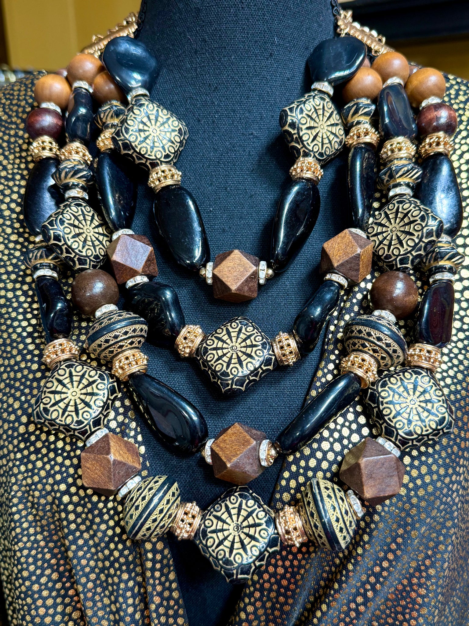 MSK Woman Gold Black Dress Sz 2X with Statement Necklace